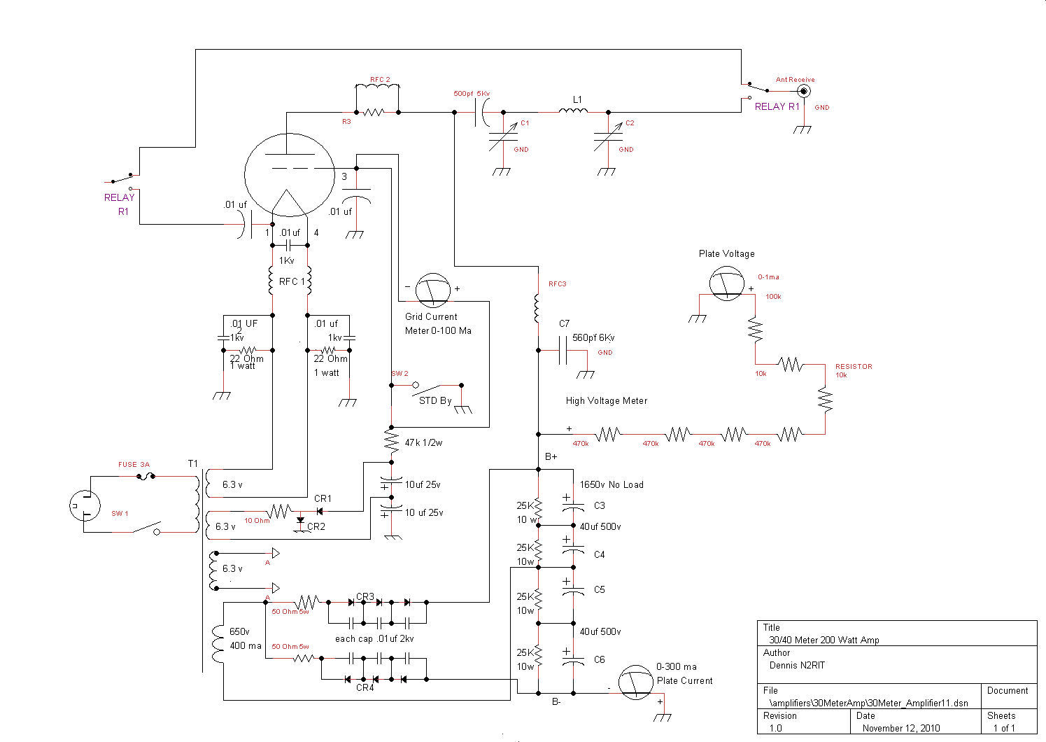 a PDF file of my schematic. The 200 watt 811A 30/40 meter amplifier.